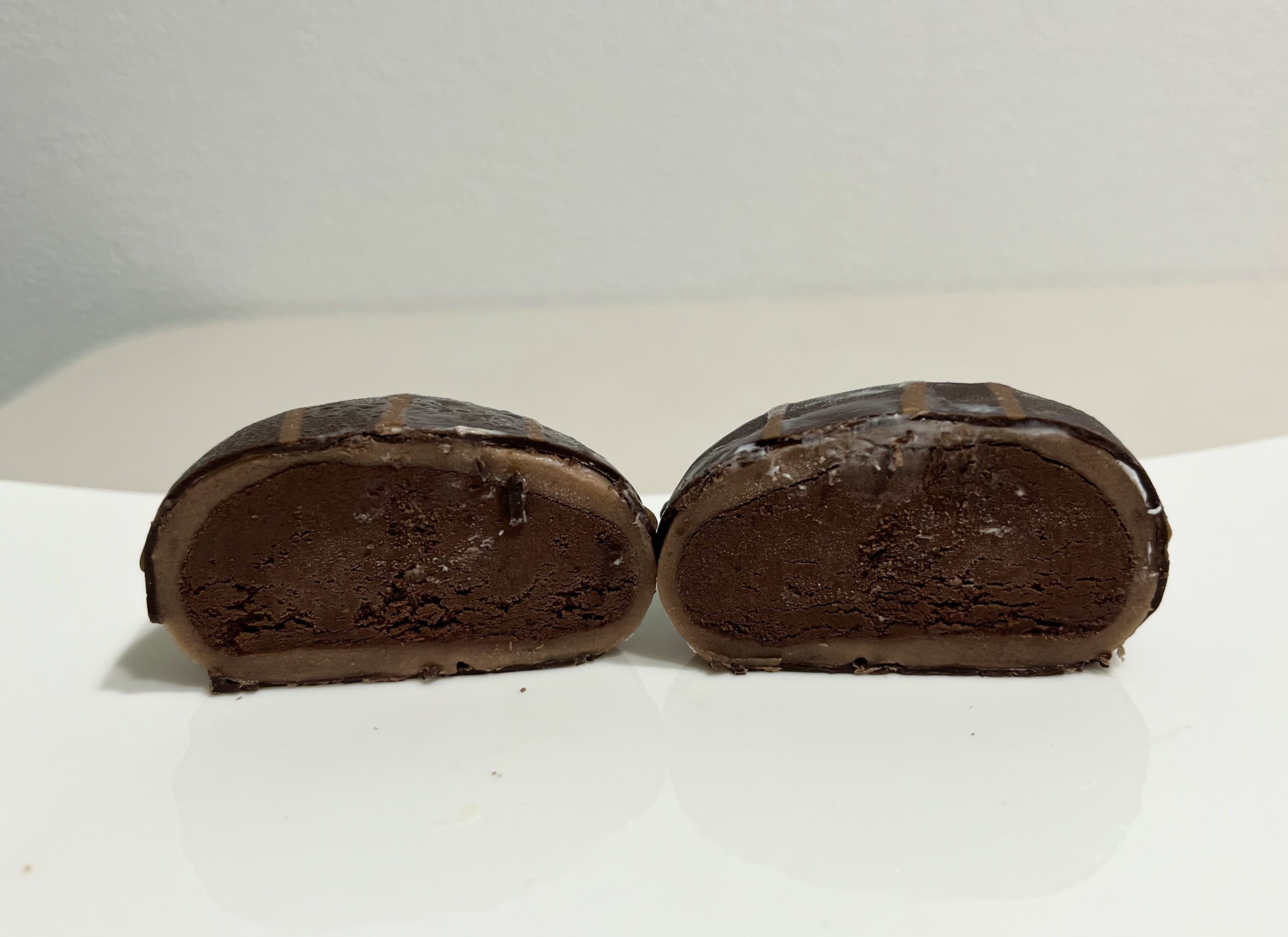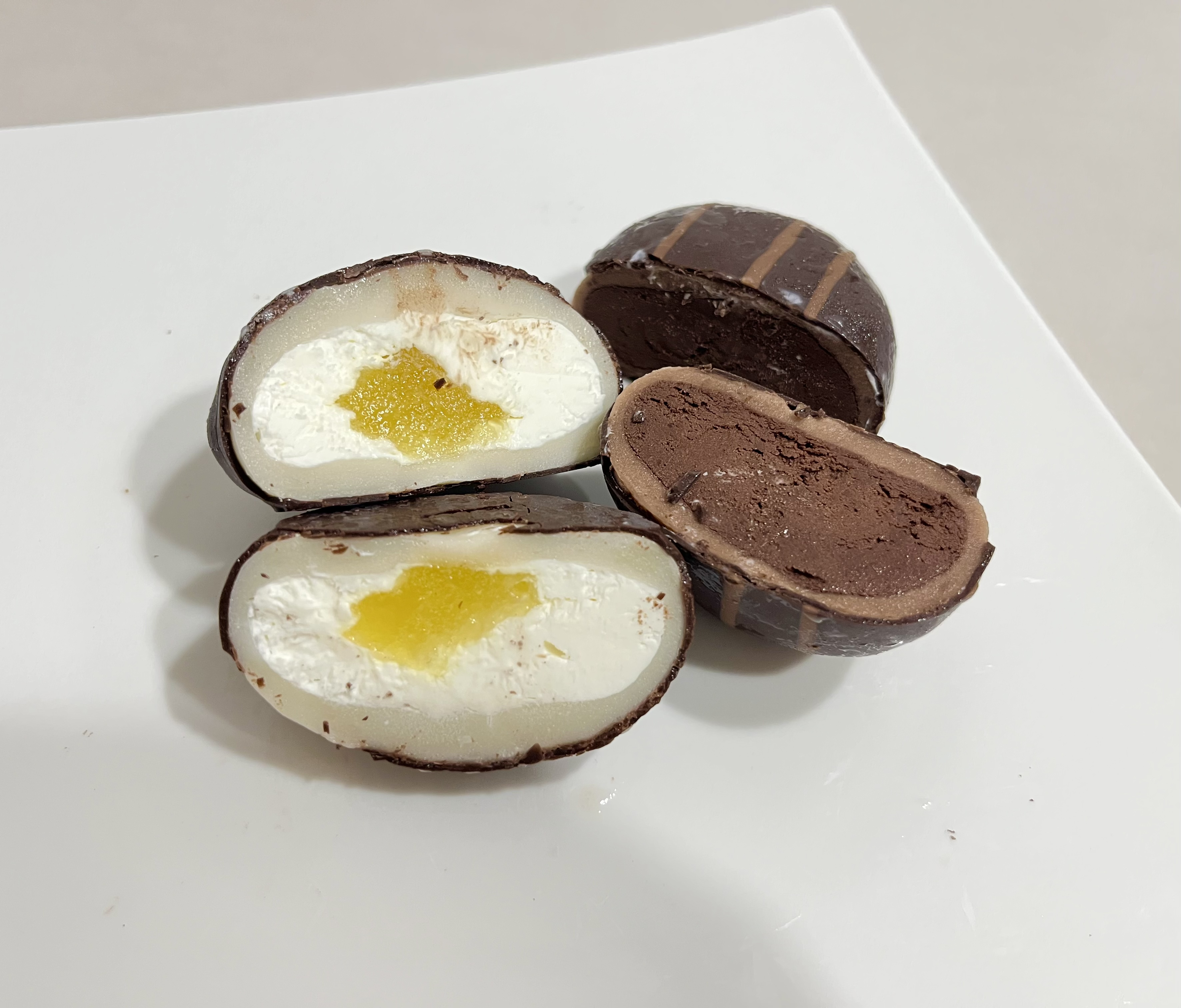 초코코팅된 겉면을 잘라보면 요거트크림안에